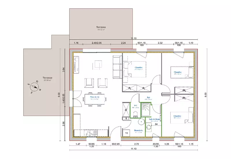 Proposée par MAISONS FRANCE CONFORT – 4 pièces - 3 chambres - terrain 1 200 m²