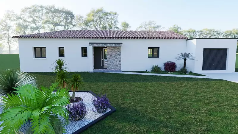 Le modele présenté est composé de décroché pour récréer des ambiances au sein de la piece de vie, une terrasse couverte permet de profiter de l'extérieur meme en temps pluvieux.
