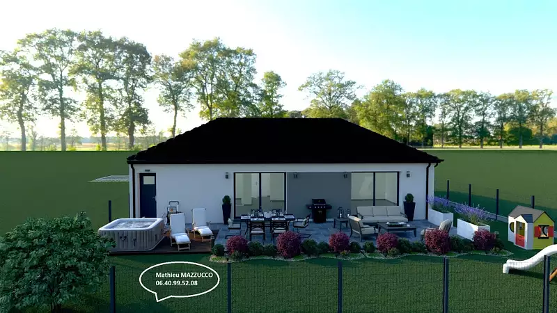Terrain proposé par un partenaire foncier selon disponibilités et autorisation de publicité au prix de 49 443 €. Hors droit d'enregistrement et frais de notaire. Terrain + Maison proposés au prix de 155 557 € (Hors branchements et raccordements, papiers peints, peintures, revêtement de sol dans les chambres. Tarif modifiable sans préavis). Etiquette énergie : A. Différents modèles disponibles pour ce terrain. . HEXAOM Services est enregistré auprès de l'ORIAS en tant que Courtier en financement, Niveau 1, sous le numéro 14001345.