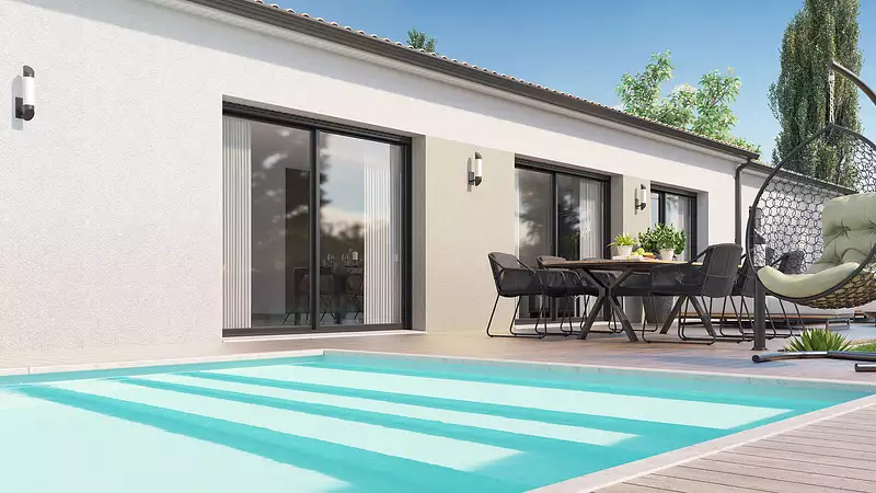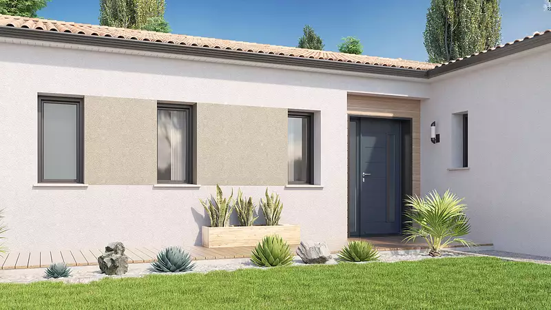 Une maison pensée pour le confort de toute la famille. Découvrez cette maison de plain-pied, où chaque détail a été conçu pour allier fonctionnalité et modernité. Avec son double garage et ses espaces bien agencés, elle répond parfaitement aux besoins d’une vie familiale harmonieuse. Le plan offre un vaste salon/séjour lumineux ouvert sur une cuisine à ilot central, idéal pour partager des moments de convivialité. La suite parentale bénéficie d’un espace dédié, tandis que l’espace enfant, composé de deux chambres et d’une salle d’eau, assure confort et indépendance à chacun. Une maison où chaque membre de la famille trouvera sa place pour s’épanouir pleinement. Consultez le plan et laissez-vous séduire !. Pour vous assurer un confort de vie et conformément à la RE2025, nous avons choisi un mode de chauffage par PAC + plancher chauffant, volets roulants électriques. Prix hors peinture, décoration, revêtements de sol dans les chambres, cuisine équipée, frais de notaire, raccordements, dommage ouvrage.