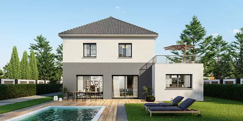 Exemple pour ce projet de maison avec ses 5 belles chambres, un séjour ouvert sur la cuisine le tout accompagné d'un garage qui peut être proposé en option et de prestations premiums haut de gamme pour un budget à partir de 549000 euros