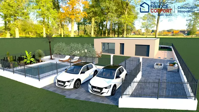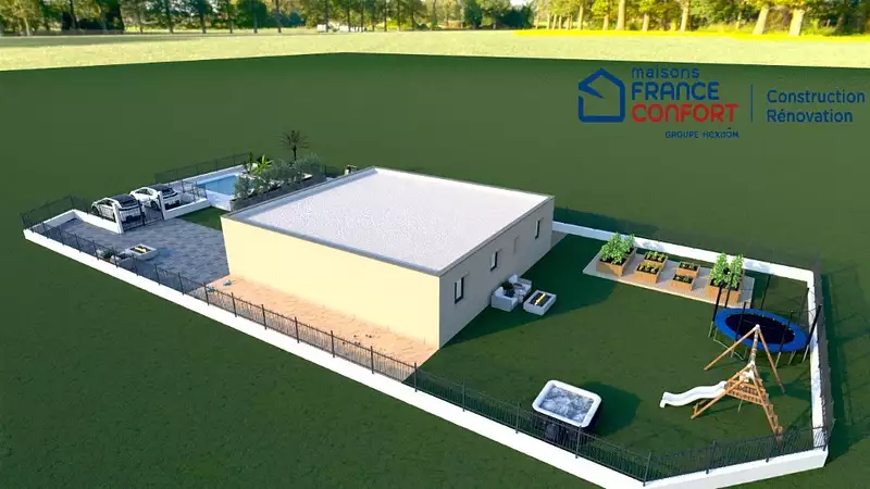 Terrain proposé par un partenaire foncier selon disponibilités et autorisation de publicité au prix de 164 000 €. Hors droit d'enregistrement et frais de notaire. Maison proposée, avec un contrat de construction de maison individuelle, dans le cadre de la loi du 19/12/1990, au prix de 197 000 € (Hors branchements et raccordements, papiers peints, peintures, revêtement de sol dans les chambres, qui sont chiffrés dans les travaux qui restent à charge du client. Tarif modifiable sans préavis). Étiquette énergie : A. Différents modèles disponibles pour ce terrain. Assurances et garanties du constructeur comprises (RC professionnelle, décennale, dommage ouvrage).