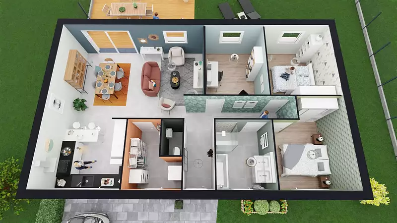À construire sur la commune de Billy-Berclau, proche de Lille et de toutes commodités, maison de plain-pied moderne et économique de 93 m² habitables, implantée sur une parcelle de 465 m².