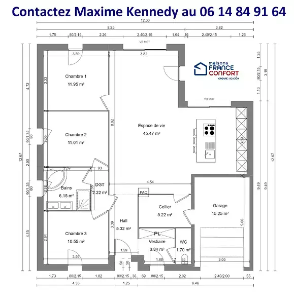 Proposée par MAISONS FRANCE CONFORT – 4 pièces - 3 chambres - terrain 543 m²