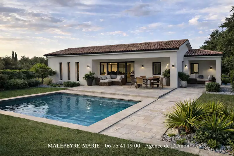 À Blagnac (31700), en plein centre-ville, offrez à votre famille un cadre de vie rare sur un terrain viabilisé de 419 m² avec maison traditionnelle de plain-pied de 100 m² à construire. Pensée pour le confort et la fluidité, elle propose un vaste espace de vie ouvert avec cuisine US, trois chambres dont une suite parentale avec dressing et salle d’eau, une seconde salle de bains, un cellier et un toilette indépendant. Les volumes sont optimisés. La lumière est au rendez-vous. Le jardin devient un espace sécurisé pour les enfants. Écoles, collèges, parcs, commerces, services, transports et accès rapides vers Toulouse sont accessibles à pied ou en quelques minutes, tout comme l’aéroport Toulouse-Blagnac. Un emplacement stratégique. Une signature de qualité. Un projet à forte valeur patrimoniale. Contactez-nous dès aujourd’hui pour donner vie à votre future adresse. Nous avons sélectionné ce terrain en partenariat avec nos aménageurs fonciers, dans le cadre d’un projet avec Demeures d'Occitanie.