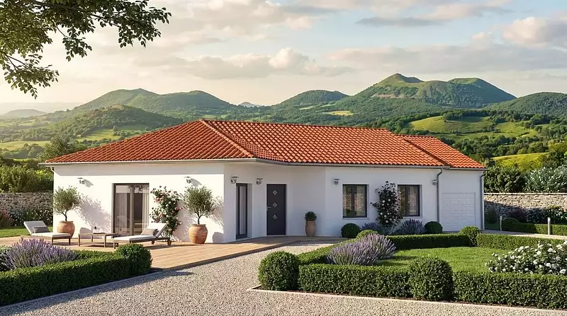 Cette maison se distingue par son architecture moderne, avec une option de toiture à 2 ou 4 pans, selon vos préférences, et un garage intégré pour plus de commodité. Son design extérieur est complété par une toiture de 2 à 3 versants, ajoutant un charme indéniable à l'ensemble. L'intérieur n'est pas en reste, offrant un salon séjour spacieux et ouvert sur l'extérieur, invitant la lumière naturelle à chaque moment de la journée et renforçant le lien avec la nature environnante.