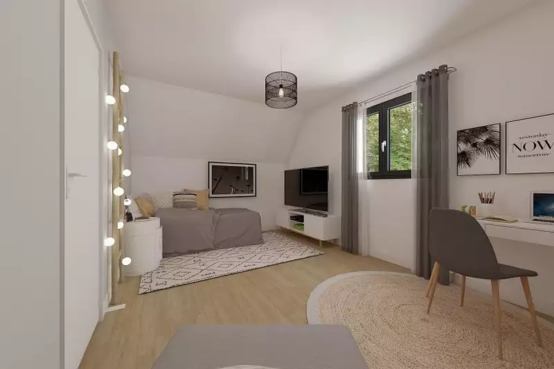 Projet modulable avec la possibilité de l'adapter avec 2 ou 4 chambres, il est possible d'y ajouter un bureau et une suite parentale. Le modèle est totalement adaptable à vos envies et besoins et personnalisable grâce à de nombreuses options de finition. Nous vous proposons une maison économique et écologique grâce à la nouvelle norme RE2020. Donner vie à vos projets avec la construction sur-mesure !