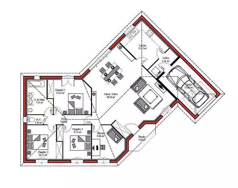 Proposée par BATISOFT – 5 pièces - 3 chambres - terrain 800 m²
