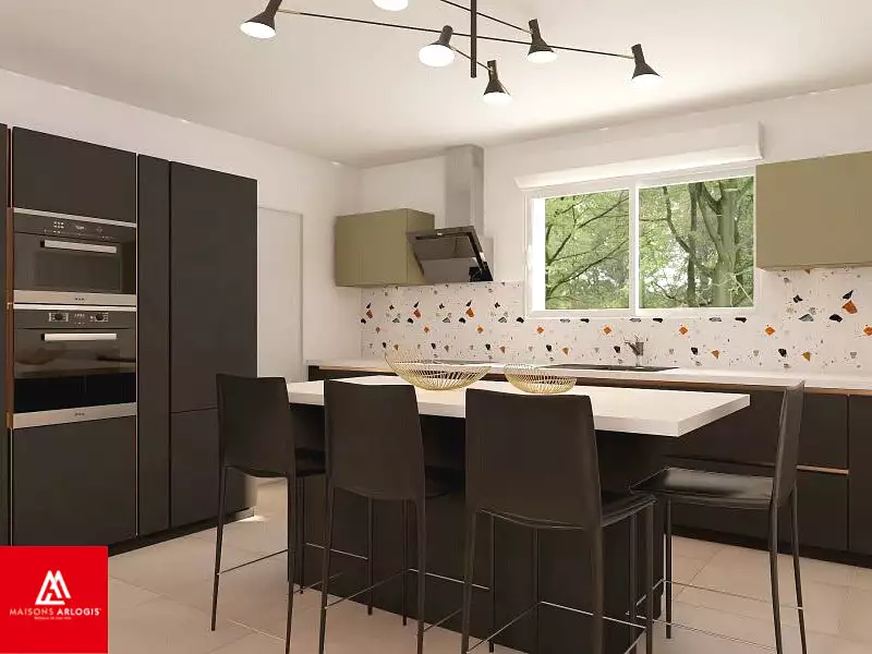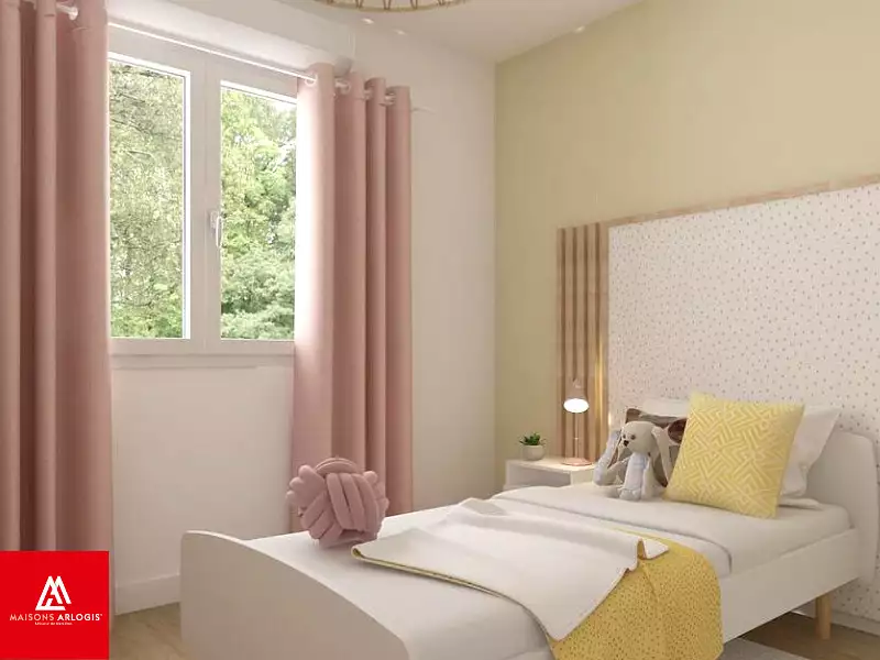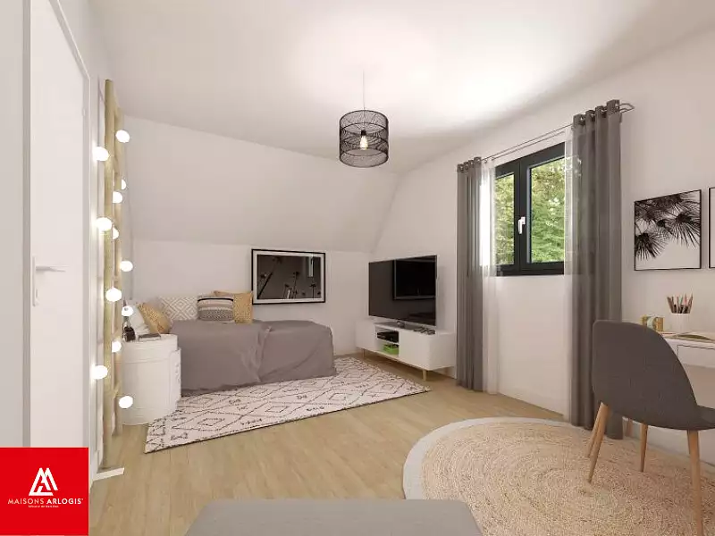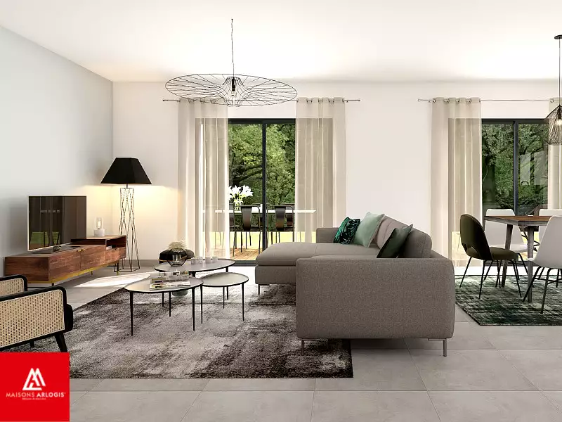-------------------------------------------------------------------------------------------- Visuel d'illustration. Le modèle est totalement adaptable à vos envies et besoins et personnalisable grâce à de nombreuses options de finition. Nous consulter pour plus d’informations. Le prix affiché comprend le coût du terrain et de la construction hors frais de notaire et taxes. Les annonces de terrains constructibles sont sélectionnées auprès de nos partenaires fonciers selon disponibilités et autorisation de publicité en vue de construire une maison neuve avec un Contrat de Construction de Maison Individuelle dans le cadre de la loi du 19/12/1990. Ces derniers sont soit des professionnels dûment habilités à la transaction immobilière, soit des particuliers. Les terrains sélectionnés sont disponibles à la date de la première parution de l’annonce. En aucun cas Maisons ARLOGIS ou ses collaborateurs ne sont propriétaires des terrains, ne jouent un rôle d’intermédiation ou de négociation sur la transaction et ne participent à la vente. Prix indiqués par nos partenaires fonciers.