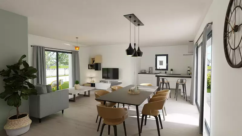 Découvrez un projet de maison contemporaine qui allie élégance, confort et fonctionnalité. Conçue pour s’adapter aux besoins d’aujourd’hui, elle offre un intérieur lumineux et chaleureux, idéal pour une vie de famille épanouie. Son architecture moderne maximise les espaces tout en apportant une belle harmonie entre volumes ouverts et coins plus intimistes. Chaque pièce est pensée pour conjuguer praticité et bien-être, avec des finitions soignées qui font toute la différence. Vous y trouverez un vaste espace de vie convivial, une cuisine ouverte propice au partage, des chambres confortables, une salle de bain élégante et des rangements astucieux pour un quotidien organisé. À l’extérieur, profitez d’un espace agréable où vous pourrez créer votre cocon, qu’il s’agisse d’un jardin fleuri, d’une terrasse accueillante ou d’un espace détente selon vos envies. Un lieu de vie conçu pour vous offrir un quotidien fluide et apaisant, où chaque instant devient un plaisir. Pour vous assurer un confort de vie et conformément à la RE2025, nous avons choisi un mode de chauffage par PAC + plancher chauffant, volets roulants électriques. Prix hors peinture, décoration, revêtements de sol dans les chambres, cuisine équipée, frais de notaire, raccordements, dommage ouvrage.