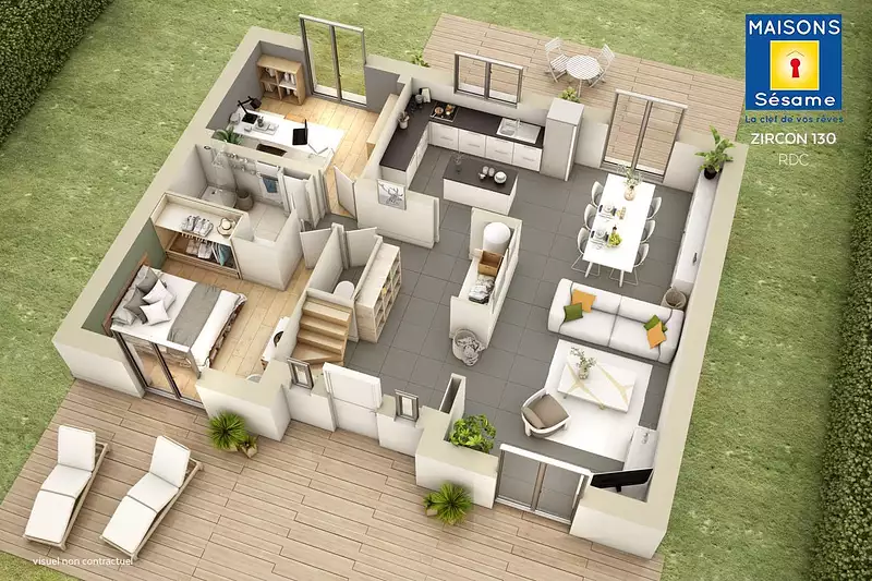 Le modèle ZIRCON 130, à combles aménagés, offre 7 pièces bien agencées, dont 5 chambres, pour un confort optimal.