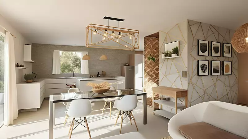 Photos non contractuelles Visuel d'illustration. Le modèle est totalement adaptable à vos envies et besoins et personnalisable grâce à de nombreuses options de finition. Nous consulter pour plus d’informations. Le prix affiché comprend le coût du terrain et de la construction hors frais de notaire et taxes. Les annonces de terrains constructibles sont sélectionnées auprès de nos partenaires fonciers selon disponibilités et autorisation de publicité en vue de construire une maison neuve avec un Contrat de Construction de Maison Individuelle dans le cadre de la loi du 19/12/1990. Ces derniers sont soit des professionnels dûment habilités à la transaction immobilière, soit des particuliers. Les terrains sélectionnés sont disponibles à la date de la première parution de l’annonce. En aucun cas Maisons ARLOGIS ou ses collaborateurs ne sont propriétaires des terrains, ne jouent un rôle d’intermédiation ou de négociation sur la transaction et ne participent à la vente. Prix indiqués par nos partenaires fonciers.