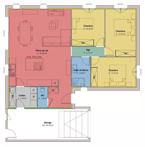 Proposée par MAISONS FRANCE CONFORT – 4 pièces - 3 chambres - terrain 500 m²