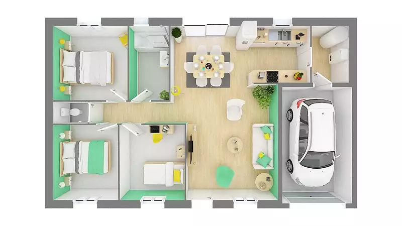 L'architecture d'""Harmonie"" se distingue par son garage intégré et ses combles aménageables, offrant ainsi une flexibilité remarquable pour s'adapter à vos projets de vie, qu'il s'agisse d'un espace de travail à domicile, d'une salle de jeux pour les enfants ou d'une chambre supplémentaire.