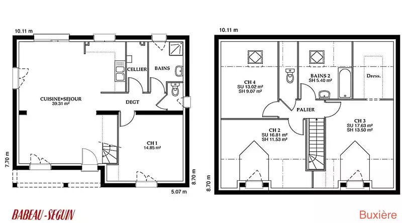 Sur ce terrain, nous vous proposons cette maison neuve, le modèle Buxière, d'une surface de 112 m². Conçue par Babeau-Seguin, constructeur offrant le meilleur rapport qualité/prix du marché, cette maison à étage est idéale pour ceux qui recherchent simplicité et convivialité sans rien céder à la qualité.