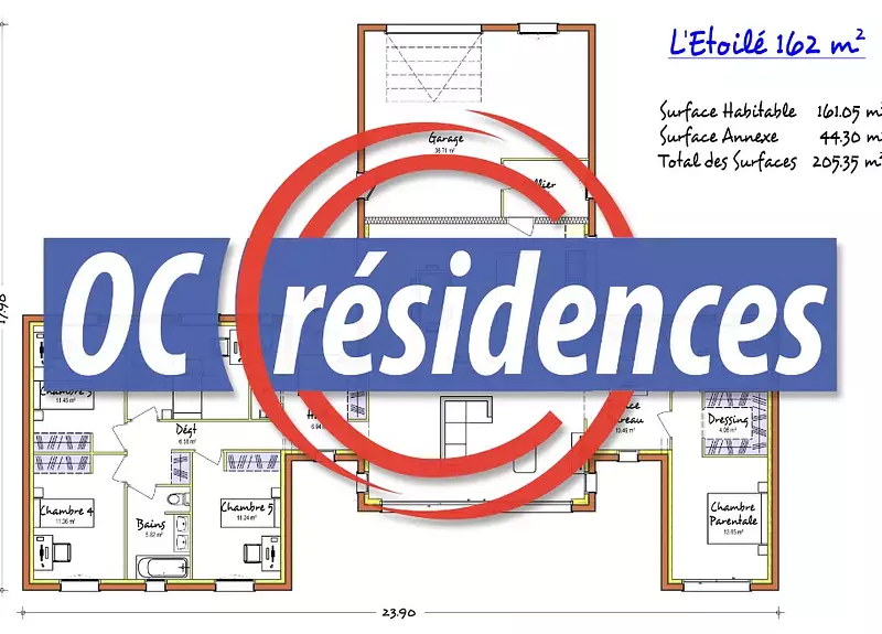 Proposée par OC RESIDENCES – 7 pièces - 5 chambres - terrain 359 m²