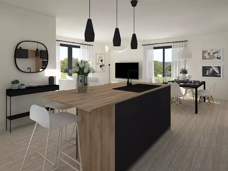 Votre future maison, conçue et réalisée par PCA Maisons, constructeur reconnu pour la qualité de ses réalisations et son savoir-faire local, propose une surface habitable de 60 m² comprenant 2 chambres, un bel espace de vie lumineux et des prestations modernes et soignées.