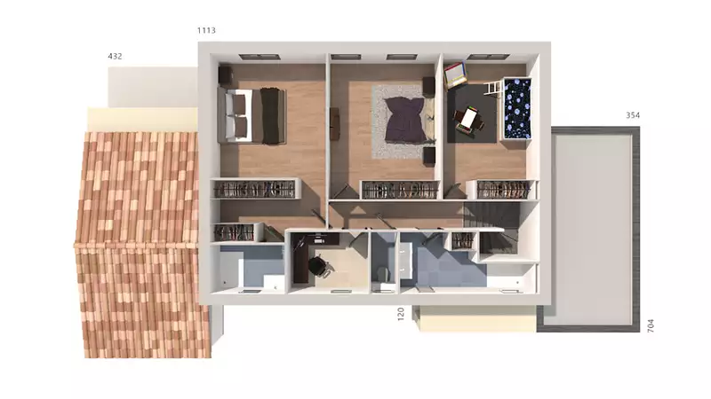 Le projet proposé comporte 4 chambres, 4 salles de bain et un garage