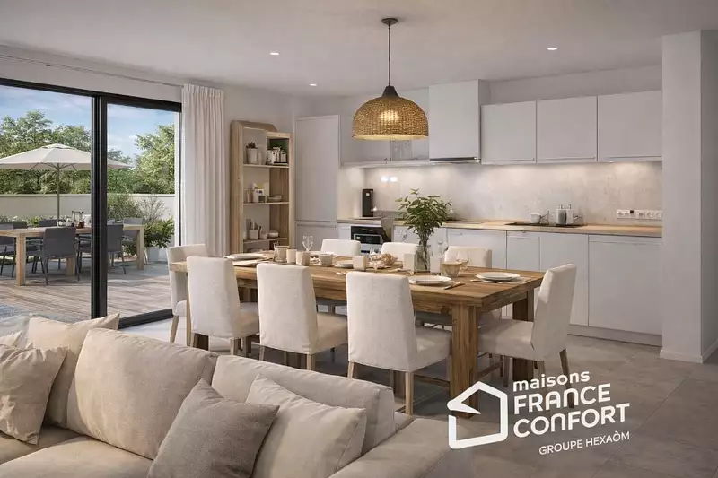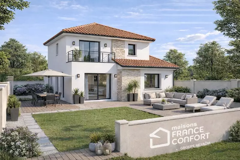 Terrain proposé par un partenaire foncier selon disponibilités et autorisation de publicité au prix de 97 000 €. Hors droit d'enregistrement et frais de notaire. Terrain + Maison proposés au prix de 243 000 € (Hors branchements et raccordements, papiers peints, peintures, revêtement de sol dans les chambres. Tarif modifiable sans préavis). Etiquette énergie : A. Différents modèles disponibles pour ce terrain. Assurances et garanties du constructeur (RC professionnelle, décennale, dommage ouvrage, garantie de remboursement de l'acompte, livraison à prix et délai convenu) : https://www.maisons-france-confort.fr/mentions-legales/. HEXAOM Services est enregistré auprès de l'ORIAS en tant que Courtier en financement, Niveau 1, sous le numéro 14001345.