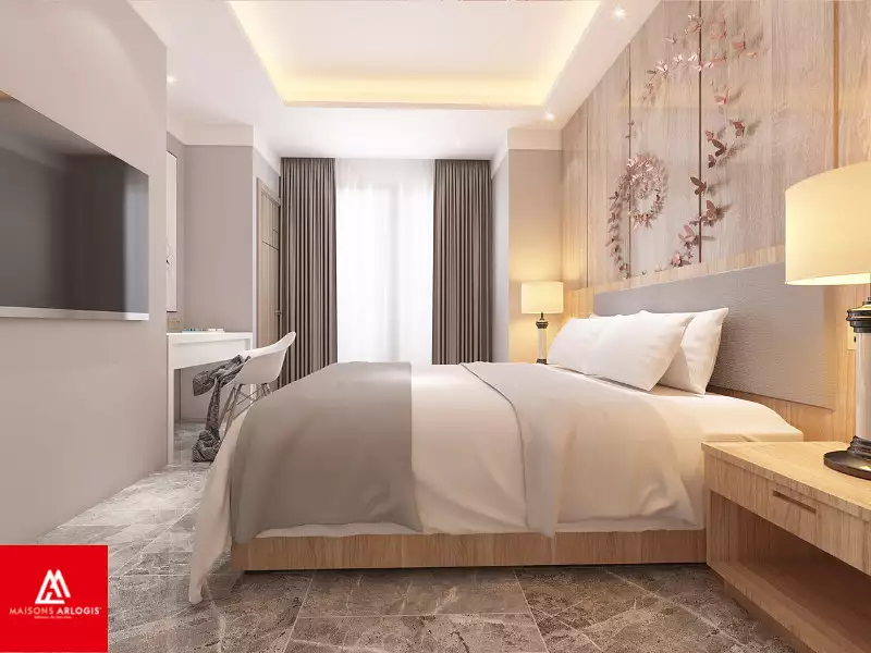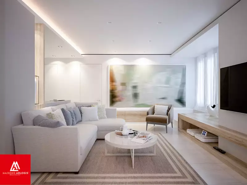 ****************************************************************** Visuel d'illustration. Le modèle est totalement adaptable à vos envies et besoins et personnalisable grâce à de nombreuses options de finition. Nous consulter pour plus d’informations. Le prix affiché comprend le coût du terrain et de la construction hors frais de notaire et taxes. Les annonces de terrains constructibles sont sélectionnées auprès de nos partenaires fonciers selon disponibilités et autorisation de publicité en vue de construire une maison neuve avec un Contrat de Construction de Maison Individuelle dans le cadre de la loi du 19/12/1990. Ces derniers sont soit des professionnels dûment habilités à la transaction immobilière, soit des particuliers. Les terrains sélectionnés sont disponibles à la date de la première parution de l’annonce. En aucun cas Maisons ARLOGIS ou ses collaborateurs ne sont propriétaires des terrains, ne jouent un rôle d’intermédiation ou de négociation sur la transaction et ne participent à la vente. Prix indiqués par nos partenaires fonciers.