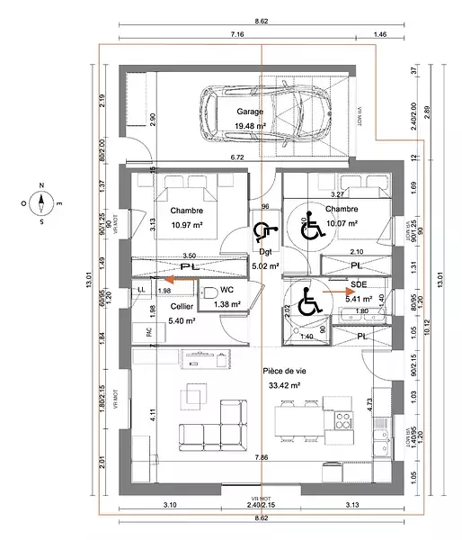 Proposée par MAISONS FRANCE CONFORT – 3 pièces - 2 chambres - terrain 481 m²