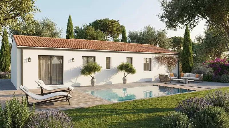 Sur ce terrain, nous vous proposons cette maison neuve Perrière Sud, un modèle de plain-pied au design typique du sud, alliant tradition et modernité. Avec une surface de 97 m², cette maison est idéale pour une famille grâce à ses 3 chambres et ses 4 pièces.