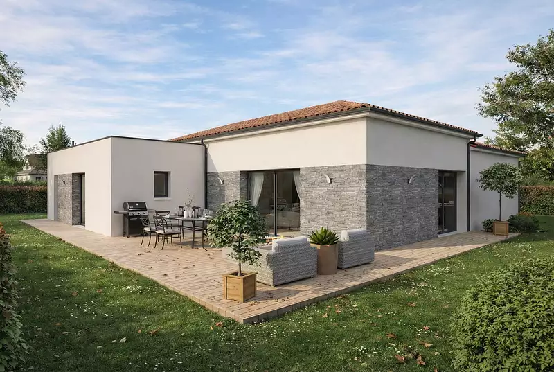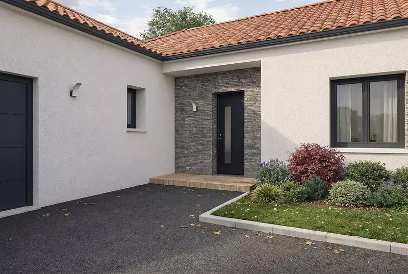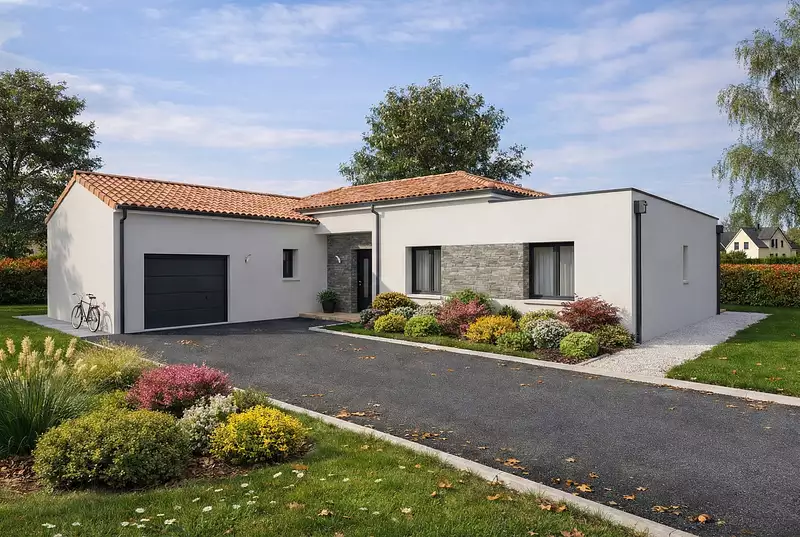 Cette maison séduit au premier regard par son architecture en L, qui structure l’espace avec fluidité et caractère. L’espace de vie s’ouvre naturellement sur l’extérieur, baigné de lumière et prêt à accueillir vos moments de partage. Le coin nuit, bien séparé, propose 4 chambres confortables et deux salles d’eau pour une vie de famille tout en douceur. Le cellier attenant à la cuisine et le garage intégré ajoutent une touche de praticité au quotidien. Un modèle pensé pour s’adapter à toutes les envies, avec un vrai potentiel de personnalisation. . Pour un confort optimal et conforme à la RE2025, cette maison dispose d'une PAC avec plancher chauffant et volets roulants électriques. A noter : le prix indiqué exclut les revêtements de sol des chambres, la cuisine aménagée, la peinture, la décoration, les raccordements, les frais de notaire, l’adaptation au sol et l'assurance dommages ouvrage.