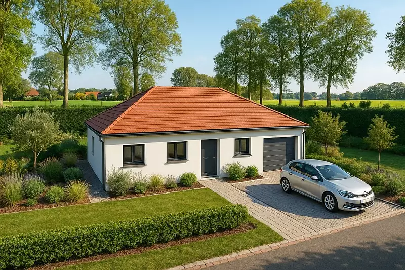 Terrain proposé par un partenaire foncier selon disponibilités et autorisation de publicité au prix de 80 000 €. Hors droit d'enregistrement et frais de notaire. Maison proposée, avec un contrat de construction de maison individuelle, dans le cadre de la loi du 19/12/1990, au prix de 180 000 € (Hors branchements et raccordements, papiers peints, peintures, revêtement de sol dans les chambres, qui sont chiffrés dans les travaux qui restent à charge du client. Tarif modifiable sans préavis). Étiquette énergie : A. Différents modèles disponibles pour ce terrain. Assurances et garanties du constructeur comprises (RC professionnelle, décennale, dommage ouvrage).