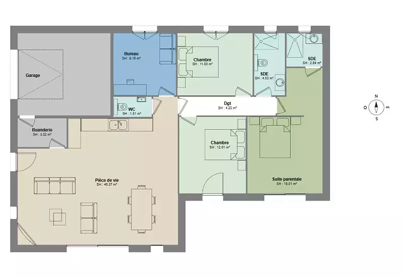 Terrain proposé par un partenaire foncier selon disponibilités et autorisation de publicité au prix de 155 000 €. Hors droit d'enregistrement et frais de notaire. Maison proposée, avec un contrat de construction de maison individuelle, dans le cadre de la loi du 19/12/1990, au prix de 284 000 € (Hors branchements et raccordements, papiers peints, peintures, revêtement de sol dans les chambres, qui sont chiffrés dans les travaux qui restent à charge du client. Tarif modifiable sans préavis). Étiquette énergie : A. Différents modèles disponibles pour ce terrain. Assurances et garanties du constructeur comprises (RC professionnelle, décennale, dommage ouvrage).