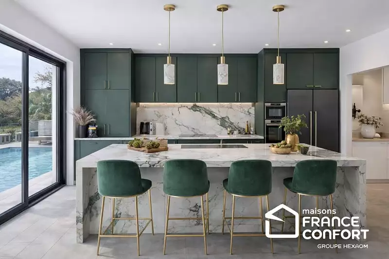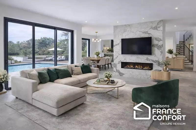 Terrain proposé par un partenaire foncier selon disponibilités et autorisation de publicité au prix de 165 000 €. Hors droit d'enregistrement et frais de notaire. Terrain + Maison proposés au prix de 465 000 € (Hors branchements et raccordements, papiers peints, peintures, revêtement de sol dans les chambres. Tarif modifiable sans préavis). Etiquette énergie : A. Différents modèles disponibles pour ce terrain. Assurances et garanties du constructeur (RC professionnelle, décennale, dommage ouvrage, garantie de remboursement de l'acompte, livraison à prix et délai convenu) : HEXAOM Services est enregistré auprès de l'ORIAS en tant que Courtier en financement, Niveau 1, sous le numéro 14001345.