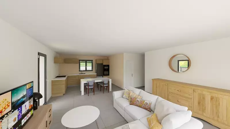 Nous avons pensé pour vous ce modèle type 4 de 90 m² composé d'une pièce de vie avec cuisine ouverte, un cellier, de 3 chambres, d'une salle de bain et WC séparé ainsi que d'un garage.