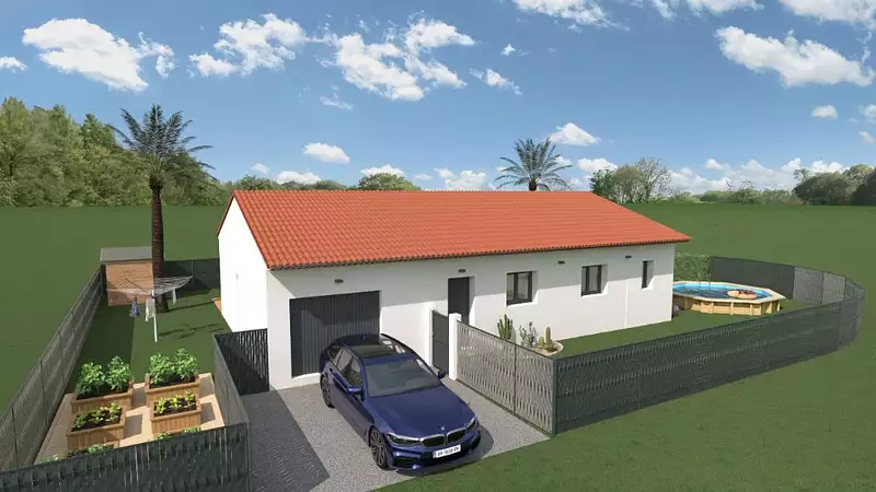 Terrain proposé par un partenaire foncier selon disponibilités et autorisation de publicité au prix de 118 000 €. Hors droit d'enregistrement et frais de notaire. Maison proposée, avec un contrat de construction de maison individuelle, dans le cadre de la loi du 19/12/1990, au prix de 175 000 € (Hors branchements et raccordements, papiers peints, peintures, revêtement de sol dans les chambres, qui sont chiffrés dans les travaux qui restent à charge du client. Tarif modifiable sans préavis). Étiquette énergie : A. Différents modèles disponibles pour ce terrain. Assurances et garanties du constructeur comprises (RC professionnelle, décennale, dommage ouvrage).