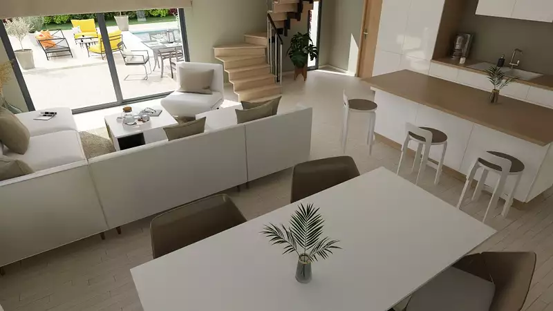 Proche de Perpignan - Maison neuve 4 pièces à vendre à Cases-de-Pène (66600) avec 2 niveaux, une surface de 125 m² et de 859 m² de terrain. Son intérieur comporte trois chambres dont une suite et un séjour de 47m².