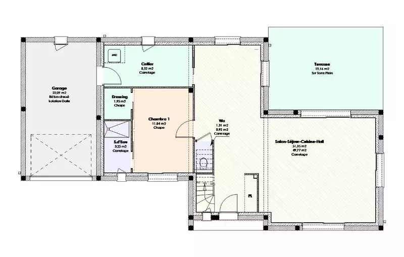 Terrain proposé par un partenaire foncier selon disponibilités et autorisation de publicité au prix de 82 000 €. Hors droit d'enregistrement et frais de notaire. Maison proposée, avec un contrat de construction de maison individuelle, dans le cadre de la loi du 19/12/1990, au prix de 242 900 € (Hors branchements et raccordements, papiers peints, peintures, revêtement de sol dans les chambres, qui sont chiffrés dans les travaux qui restent à charge du client. Tarif modifiable sans préavis). Étiquette énergie : A. Différents modèles disponibles pour ce terrain. Assurances et garanties du constructeur comprises (RC professionnelle, décennale, dommage ouvrage).