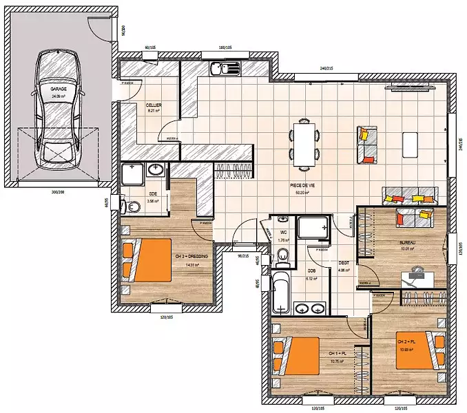 Proposée par MAISONS BERNARD JAMBERT – 5 pièces - 3 chambres - terrain 650 m²