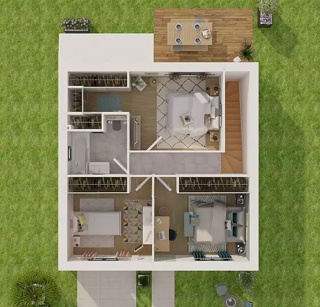 Terrain proposé par un partenaire foncier selon disponibilités et autorisation de publicité au prix de 96 000 €. Hors droit d'enregistrement et frais de notaire. Terrain + Maison proposés au prix de 152 600 € (Hors branchements et raccordements, papiers peints, peintures, revêtement de sol dans les chambres. Tarif modifiable sans préavis). Etiquette énergie : A. Différents modèles disponibles pour ce terrain. . HEXAOM Services est enregistré auprès de l'ORIAS en tant que Courtier en financement, Niveau 1, sous le numéro 14001345.
