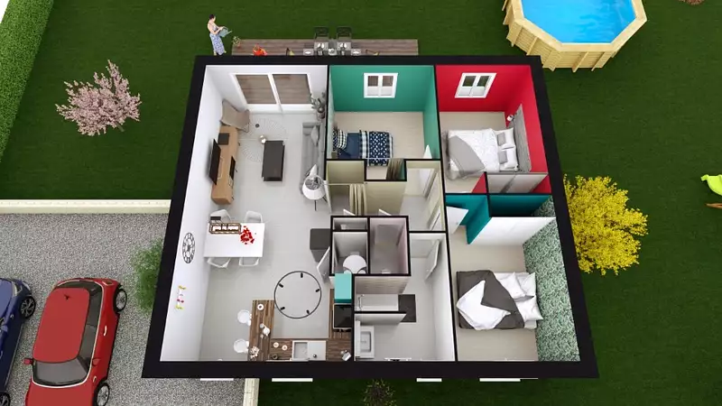 Terrain proposé par un partenaire foncier selon disponibilités et autorisation de publicité au prix de 65 600 €. Hors droit d'enregistrement et frais de notaire. Maison proposée, avec un contrat de construction de maison individuelle, dans le cadre de la loi du 19/12/1990, au prix de 116 800 € (Hors branchements et raccordements, papiers peints, peintures, revêtement de sol dans les chambres, qui sont chiffrés dans les travaux qui restent à charge du client. Tarif modifiable sans préavis). Étiquette énergie : A. Différents modèles disponibles pour ce terrain. Assurances et garanties du constructeur comprises (RC professionnelle, décennale, dommage ouvrage).