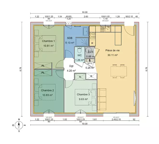 Proposée par MAISONS FRANCE CONFORT – 3 pièces - 3 chambres - terrain 400 m²