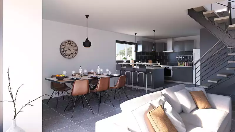 Un écrin de lumière à personnaliser ! Oubliez les compromis, ici chaque m² est pensé pour vous ! Un vaste espace de vie baigné de lumière, une circulation fluide et des volumes généreux à façonner selon vos envies. À l’étage, 2 grandes chambres et un dressing pour un confort absolu. Un garage et un cellier malin complètent cette maison à l’architecture élégante et contemporaine. Faites de ce projet le vôtre, imaginez-le à votre image !. Pour un confort optimal et conforme à la RE2025, cette maison dispose d’une PAC avec plancher chauffant, radiateurs à l’étage et volets roulants électriques. À noter : Le prix indiqué exclut les revêtements de sol des chambres, la cuisine aménagée, la peinture, la décoration, les raccordements, les frais de notaire et l’assurance dommages-ouvrage. (Piscine non contractuelle, non comprise dans le prix).