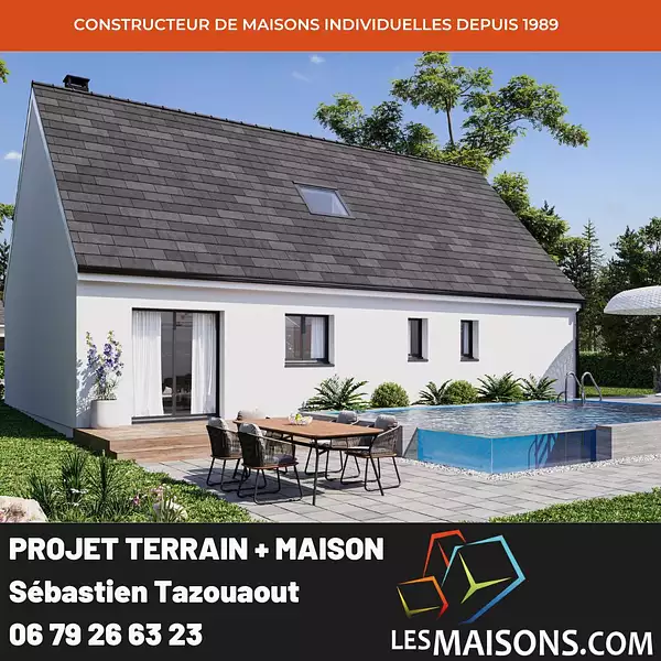 Prix indiqué hors frais annexes, aménagements extérieurs et finitions intérieures. Ce prix n'inclut pas les frais de notaire sur le terrain. Terrain proposé par un partenaire foncier, sous réserve de disponibilité. Projet réalisé dans le cadre d'un Contrat de Construction de Maison Individuelle (CCMI). Visuel non contractuel.
