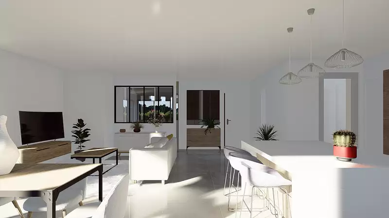 La maison spacieuse de 120 m² habitables comprend 5 pièces, dont 3 chambres, parfaites pour accueillir toute la famille. Le salon de 45 m² bénéficie d’une belle luminosité et d'une configuration optimisée pour des moments conviviaux. Conçue dans un style contemporain, cette maison sera équipée d’un mode de chauffage performant par pompe à chaleur, garantissant un confort quotidien tout au long de l’année. La distribution individuelle de l'eau chaude ajoute à la praticité de cette construction.