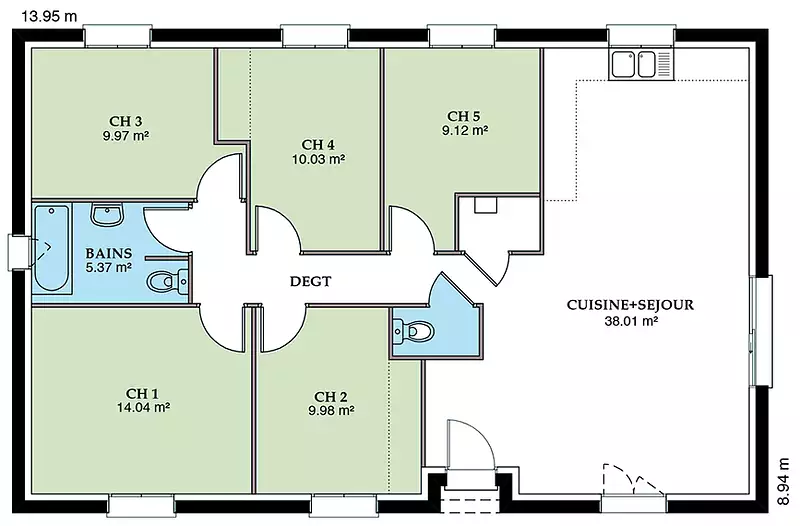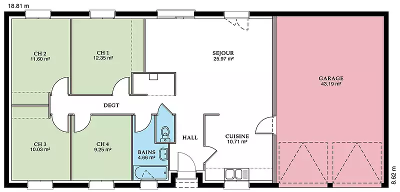 Ce modèle se compose de 4 pièces lumineuses et spacieuses, dont 4 chambres confortables, offrant ainsi un cadre de vie idéal pour une famille. Chaque espace a été pensé pour maximiser le confort et la fonctionnalité, tout en respectant les critères de la norme RE2020. Vous bénéficierez d'un intérieur à la fois moderne et chaleureux, avec la possibilité de personnaliser les finitions selon vos goûts et vos besoins.