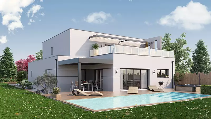 Le modèle Gizeux impressionne par son architecture contemporaine et ses volumes généreux, pensés pour conjuguer espace, élégance et confort. Avec ses 259 m² répartis sur deux niveaux, cette maison familiale allie modernité, luminosité et prestations haut de gamme. Au rez-de-chaussée, un vaste espace de vie de plus de 50 m² accueille salon, salle à manger et cuisine ouverte dans une ambiance lumineuse et conviviale. Ce niveau propose également une suite parentale avec dressing et salle d’eau privative, ainsi qu’une salle TV, une salle de sport et un bureau, offrant à chaque membre de la famille son propre espace de détente ou de travail. L’étage se compose de quatre chambres spacieuses, dont deux reliées par une salle d’eau communicante, et d’une seconde salle de bain. Une salle de jeux et une terrasse de plus de 38 m² complètent cet étage, créant un lieu idéal pour profiter des moments de calme ou des journées ensoleillées. Avec ses 3 salles de bain, son garage intégré et son agencement fonctionnel, le modèle Gizeux incarne une maison d’exception, où design, confort et bien-être se rencontrent pour un quotidien lumineux et harmonieux. Pour vous assurer un confort de vie et conformément à la RE2025, nous avons choisi un mode de chauffage par PAC + plancher chauffant, volets roulants électriques. Prix hors décoration, frais de notaire, raccordements, dommage ouvrage. (Piscine non contractuelle et non comprise dans le prix. ).