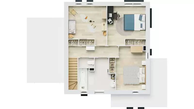 À l’intérieur, la Conception est pensée pour le confort et la fonctionnalité. Elle offre 4 chambres spacieuses dont une suite parentale, ainsi qu’une vaste pièce de vie ouverte, idéale pour partager des moments conviviaux en famille ou entre amis. La dalle béton à l’étage assure une isolation phonique et thermique optimale, renforçant le confort au quotidien.