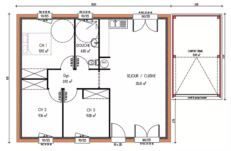 - Chambres : 3