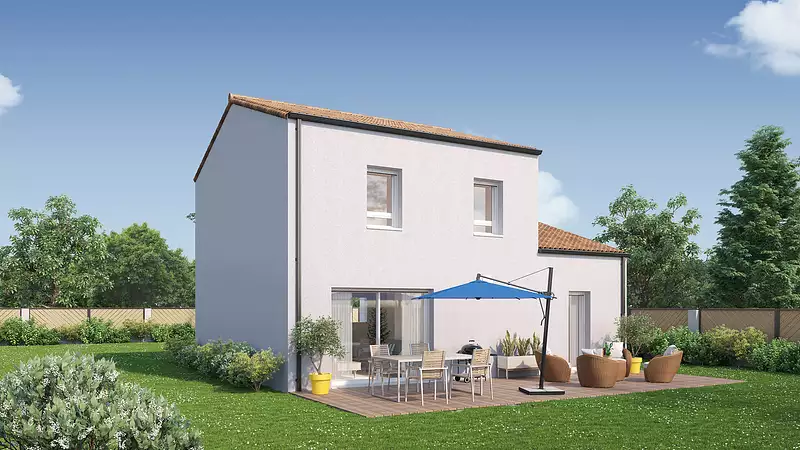 Cette charmante maison à étage de 100 m² s’adaptera sur les terrains avec une petite façade. Familiale, elle vous offre au rez-de-chaussée un bel espace de vie avec une cuisine ouverte, un cellier et un accès direct au garage, une chambre parentale avec placards, salle d’eau et wc séparés. A l’étage, un dégagement dessert trois chambres avec rangements, une salle de bains avec wc. Pour vous assurer un confort de vie optimal et en conformité avec la RE2025, nous avons opté pour un système de chauffage par pompe à chaleur (PAC) avec plancher chauffant au rez-de-chaussée et radiateurs à l’étage. Le logement est également équipé de volets roulants électriques. Prix hors fourniture et pose : des appareils sanitaires (sauf système de chauffage et d'eau chaude sanitaire), du carrelage et de la faïence, des revêtements de sol dans les chambres. Hors décoration et aménagement intérieur et peinture. Hors raccordements, frais de notaire et dommage ouvrage.