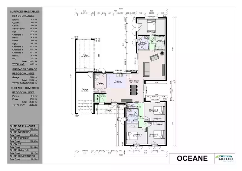 Proposée par MAISONS ACCO – 5 pièces - 4 chambres - terrain 344 m²