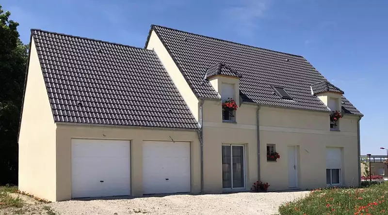 Les menuiseries sont en PVC de couleur blanche. La toiture est réalisée en tuiles béton double romane. Plusieurs couleurs d'enduit extérieur sont proposées.