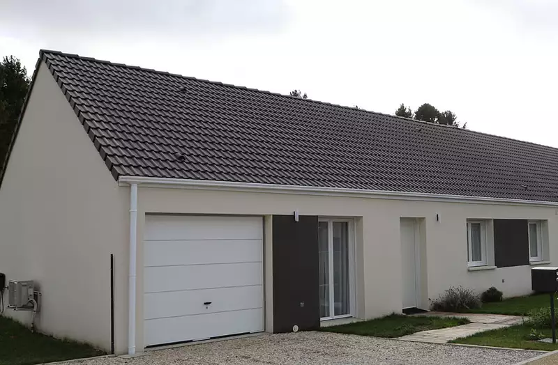 Les menuiseries sont en PVC de couleur blanche. La toiture est réalisée en tuiles béton double romane. Plusieurs couleurs d'enduit extérieur sont proposées.