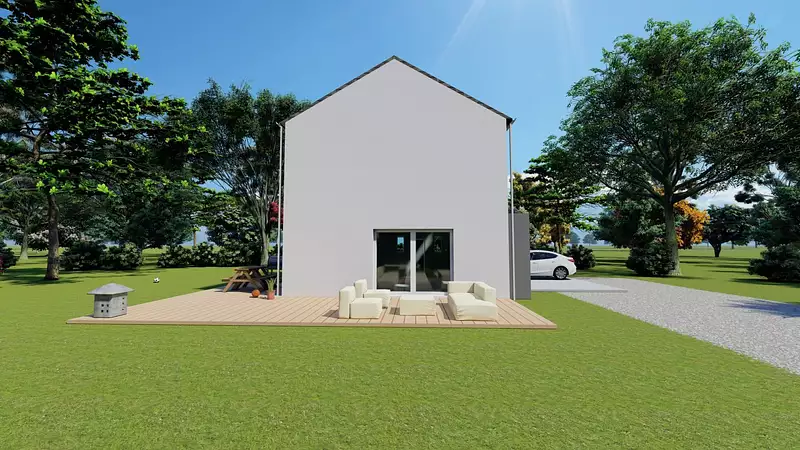 Prix avec assurance dommages-ouvrage comprise, hors VRD, terrain non viabilisé, frais de notaire non compris, frais divers non compris. Terrain sélectionné et vu pour vous sous réserve de disponibilité et au prix indiqué par notre partenaire foncier. Conditions et visuels non contractuels.